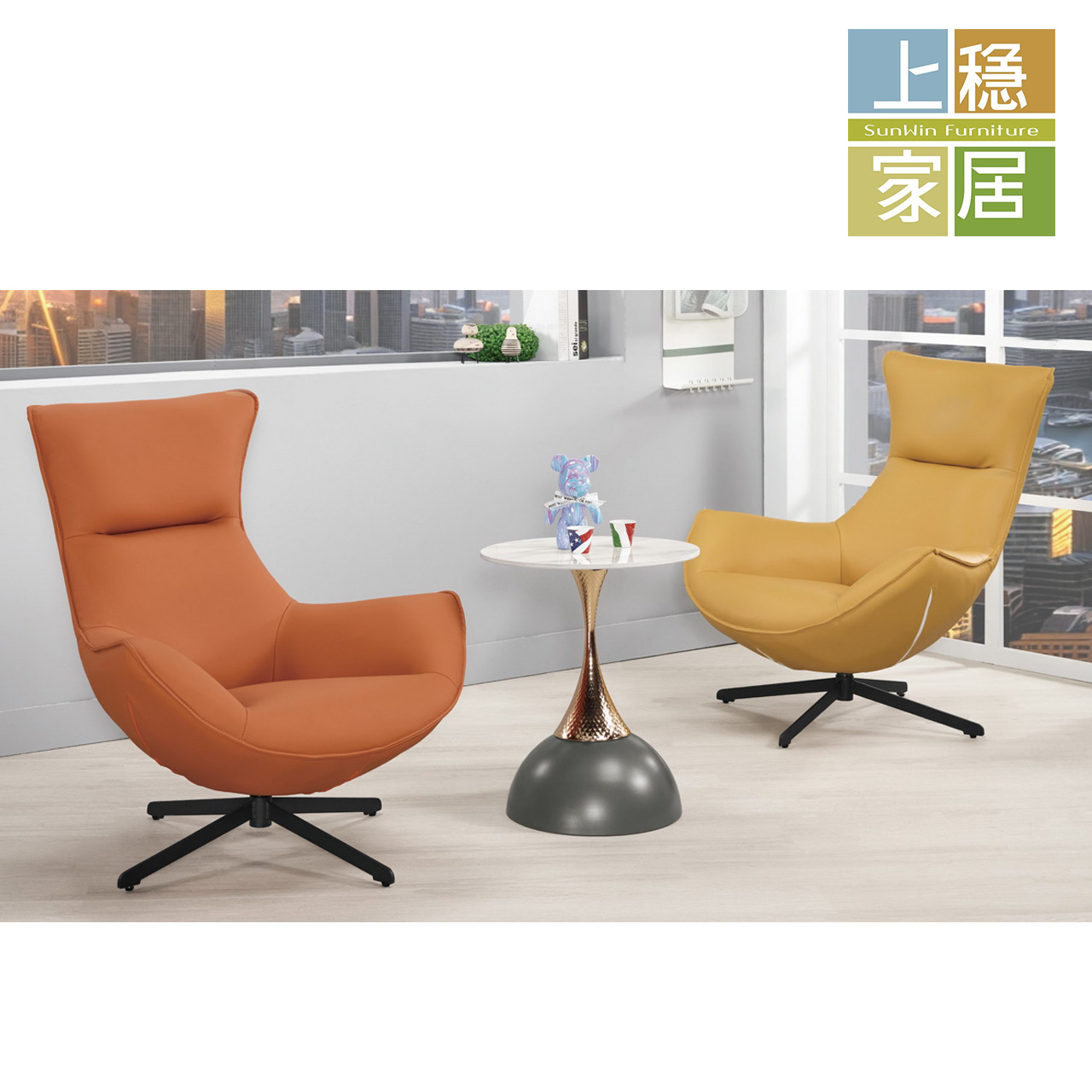 --雷森休閒旋轉椅(橘/黃)