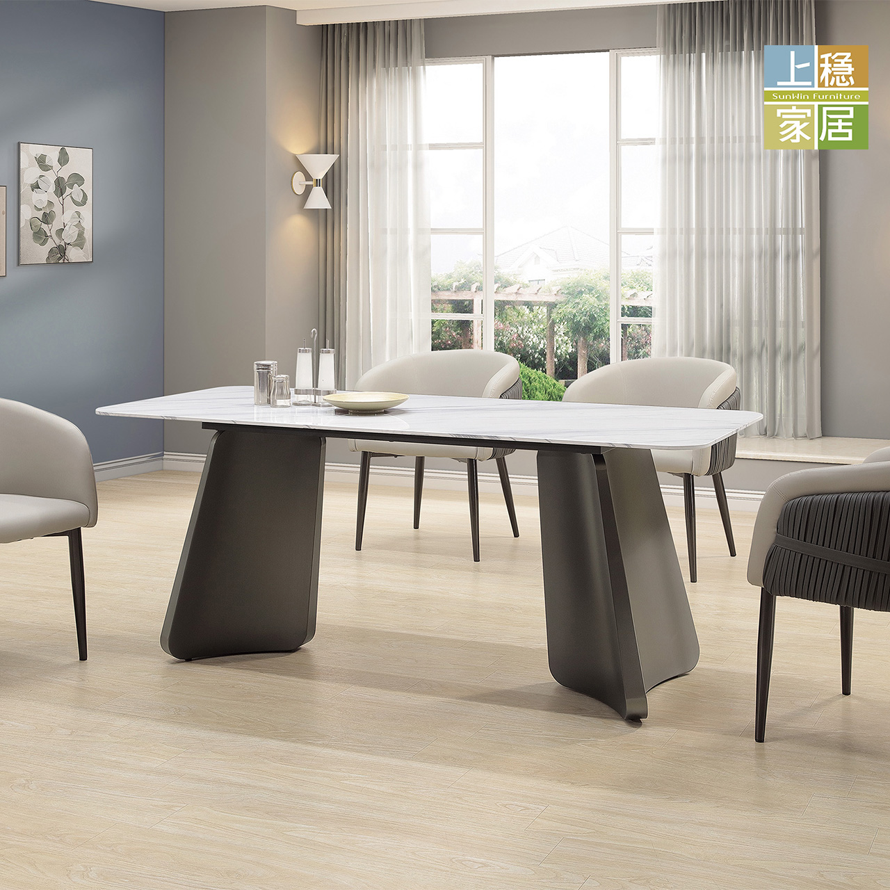 --道夫魯6尺比利白通體岩板餐桌