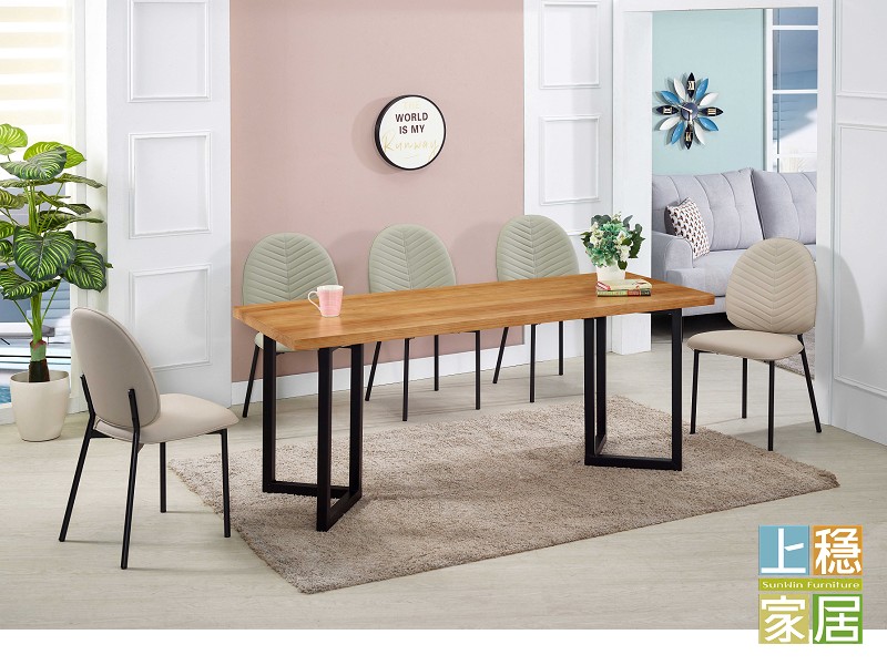餐桌:松木實木桌面(厚度4公分)+防鏽烤漆黑鐵腳