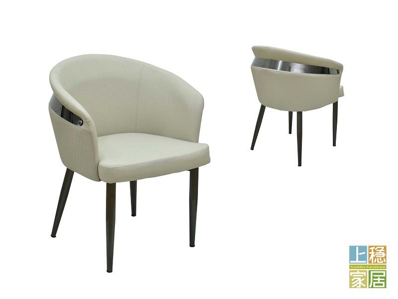 餐椅:高密度泡棉+高級進口皮革+不鏽鋼鍍黑鈦飾條+鐵灰色防鏽烤漆鐵腳