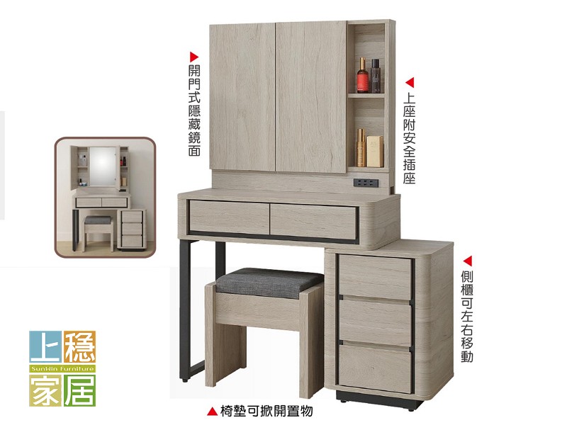正面、側板與抽牆採用台灣製造A級環保木心板,專利技術同調木紋鋼刷壓紋,猶如實木質感