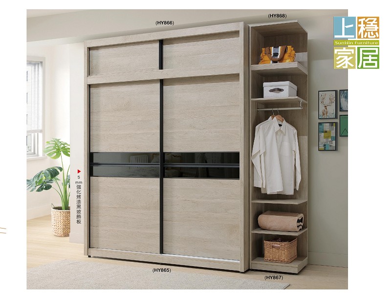 衣櫥採鍍黑旅飾條,5mm強化烤漆黑玻
