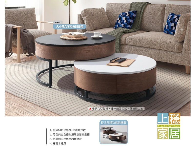 --布里奧升降功能茶几組(大+小) 大茶几:寬80*深80*高42公分 小茶几:寬70*深70*高25公分 (升降高度55公分)