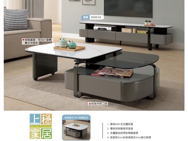 --基特米岩板旋轉延伸茶几