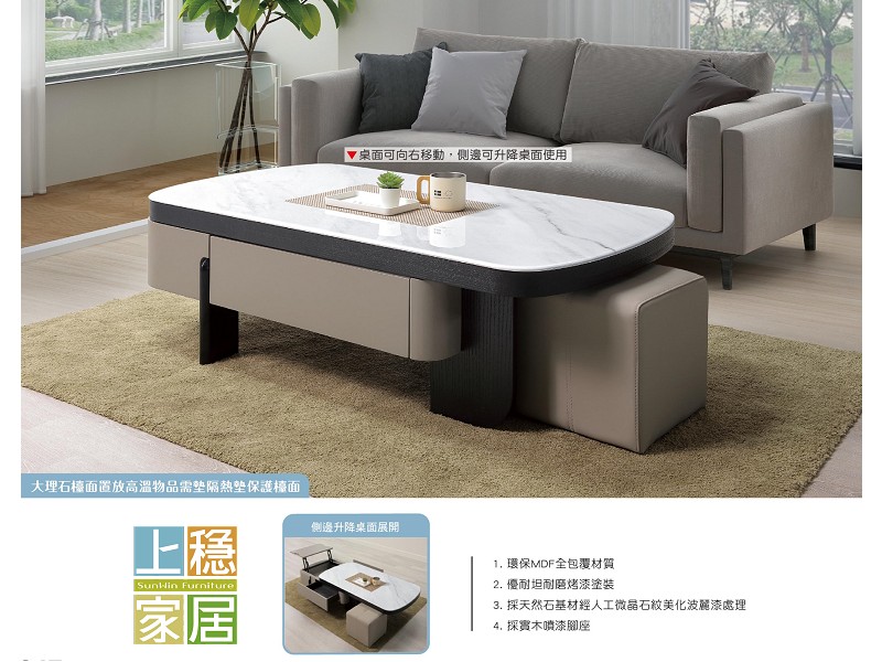 諾雅基石面功能大茶几(含凳)