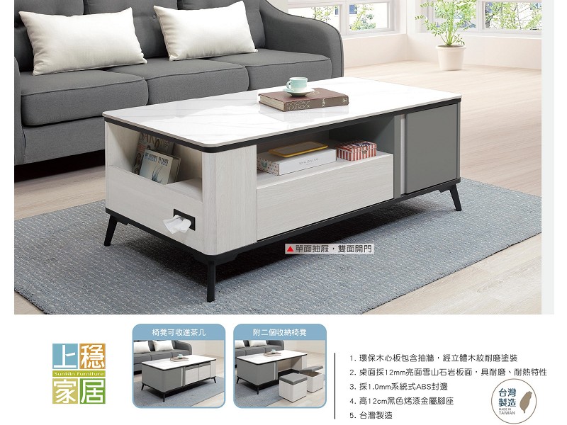 桌面採12mm亮面雪山石岩板面 具耐磨耐熱特性