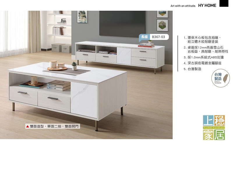 環保木心板包含抽牆 經立體木紋耐磨塗裝 桌面採12mm亮面雪山石岩板面 具耐磨耐熱特性