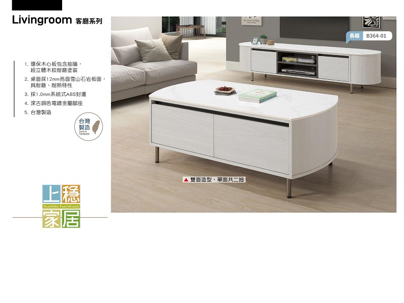 環保木心板包含抽牆 經立體木紋耐磨塗裝 桌面採12mm亮面雪山石岩板面 具耐磨耐熱特性
