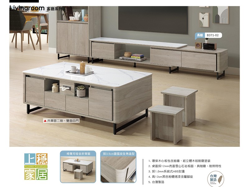 環保木心板包含抽牆 經立體木紋耐磨塗裝 桌面採12mm亮面雪山石岩板面 具耐磨耐熱特性