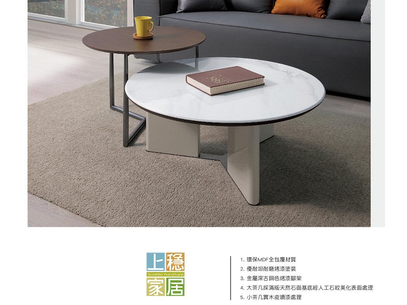 --奧莉茶几組(石面大茶几+小圓几) 大茶几:圓80*高37公分 小圓几:圓65*高49公分