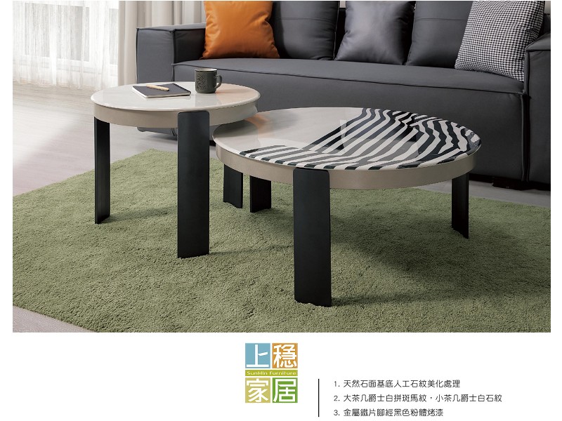 大茶几爵士白拼斑馬紋,小茶几爵士白石紋