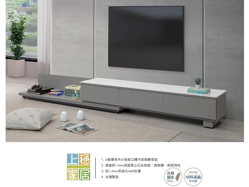 採1.0mm系統式ABS封邊 台灣製造 --瑞諾莫岩板伸縮長櫃 寬180*深40*高33公分 (伸縮:180-300公分)