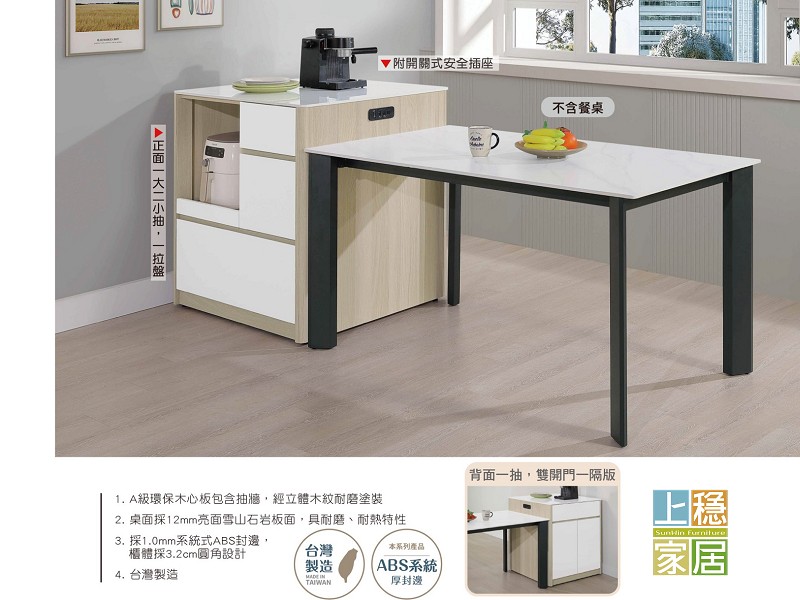 #桌邊櫃 A級環保木心板包含抽牆 經立體木紋耐磨塗裝 桌面採12mm亮面雪山石岩板面 具耐磨 耐熱特性 採1.0mm系統式ABS封邊 櫃體採3.2cm圓角設計 台灣製造 --娜黛2.7*2.7尺岩板桌邊櫃 寬80*深80*高90公分