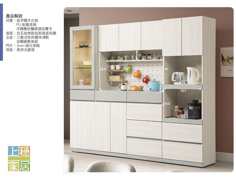--黛拉白榆木7.6尺餐櫃組 寬228*深40*高195.5公分