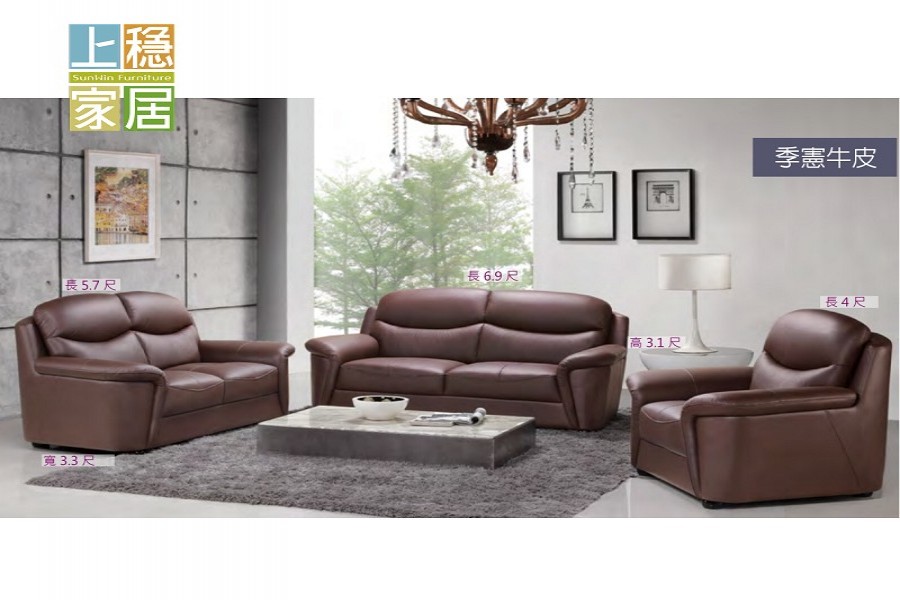 鴻德淺咖色半牛皮1+2+3沙發組 季憲0763
