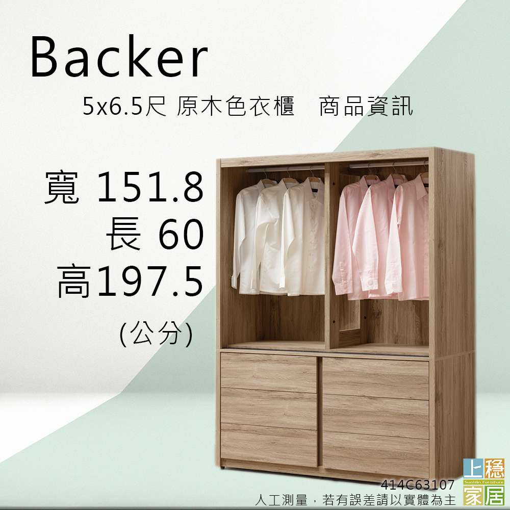 --Backer 5*6.5尺原木色衣櫃 $13900