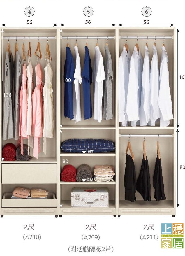 衣櫥內裝有多種變化、可依照需求自由搭配。