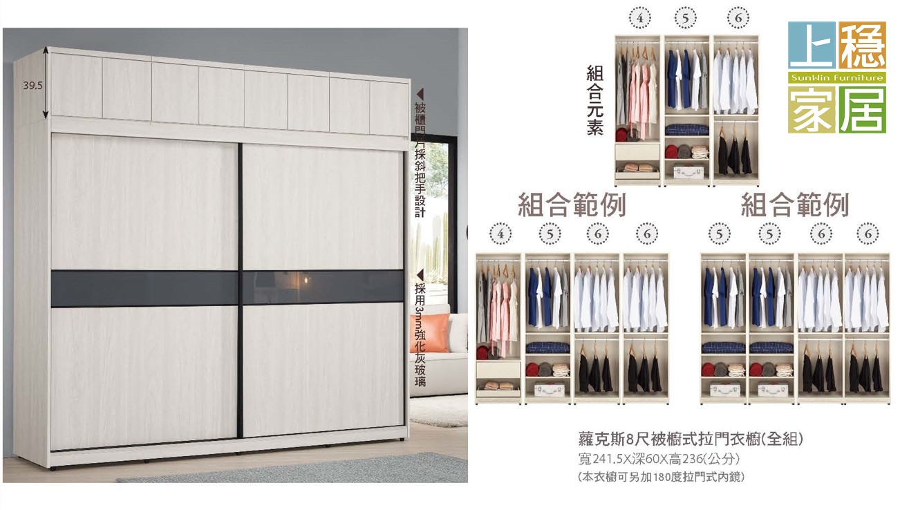 -- 克斯8尺/被櫥式拉門衣櫥(全組) (4+5+6+6)